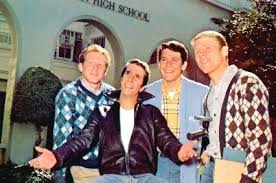 And then there was Man cardi. Cast your mind back to Happy Days (this time for a reason) and you'll remember the classic zipper and button-down cardis so sophisticating these otherwise-slightly-geeky-in-comparison-to-the-fonz-teens. Preppy people, preppy.